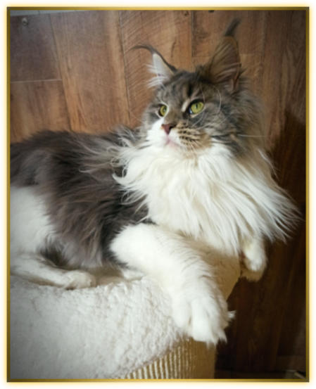 Sie hat das Fell die Größe und den lieben verschmusten Charakter von ihrem Vater Neymar geerbt.